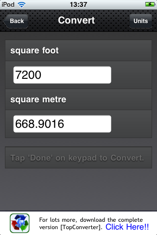 - In the 'Convert' view if the required measures have been selected the user may go ahead and enter the value to be converted into any of the textFIelds by tapping within the textField to produce the number keypad.