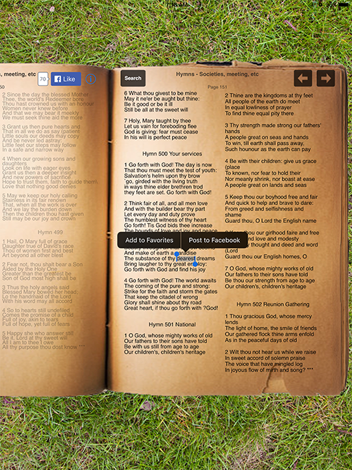 Leave A Comment >> Hymn Book Screenshots On the iPad: On the iPhone (Not showing social integration): Leave A Comment >>