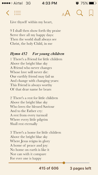 This book of Hymns, Ancient & Morden, was culled from the reprinted edition of the 1861 print. This ePub, thus, brings to your mobile device, a 150+ years of songs sung in the Anglican Church.This copy is brought to you by AppCedar Solutions limited.